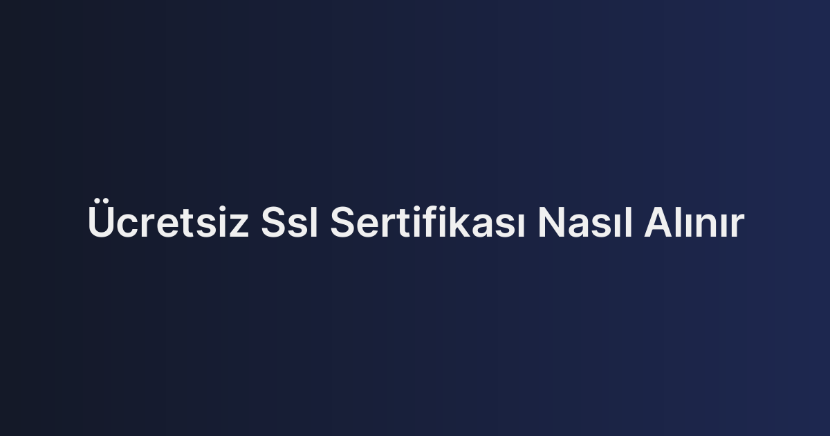 Ücretsiz Ssl Sertifikası Nasıl Alınır